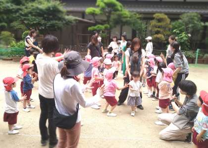 帰り際、「また来てね!バイバイ」と園児に見送られ、手を振ってくれるお友達もいましたね。もも組の子どもたちは、遊戯室の準備や片付けを進んでしていました。もも組さんありがとう。