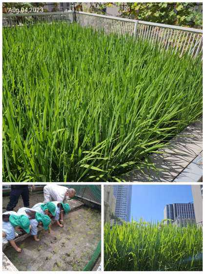 稲は、都会の中で太陽に向かってぐんぐんのびています。子どもたちと次に見に行く時が楽しみです。