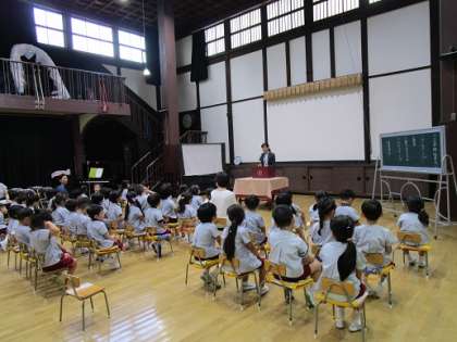 始業式では、園歌を歌い、園長先生のお話を聞きました。