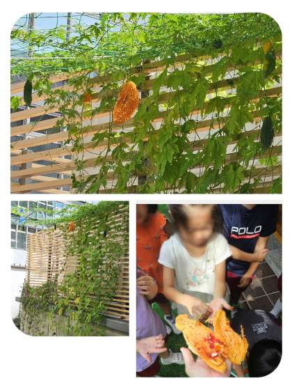 軟らかで中が見えていました。みどり組は、開けてみると赤くてプヨプヨしたものを触ったり擦ったり。。。中から種がでてきて大喜びです。出てきた種はきれいに洗って集めていました。今年のゴーヤ、大豊作です。