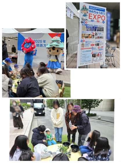 ミャクミャクやゆめまるくんとの記念撮影、ブースめぐりやオリジナル缶バッチのプレゼントにも大喜びでした。地域の取組に参加して楽しい時間を過ごしていました。船場博覧会は11/23まで開催されています。地域の楽しいことが続きますね。