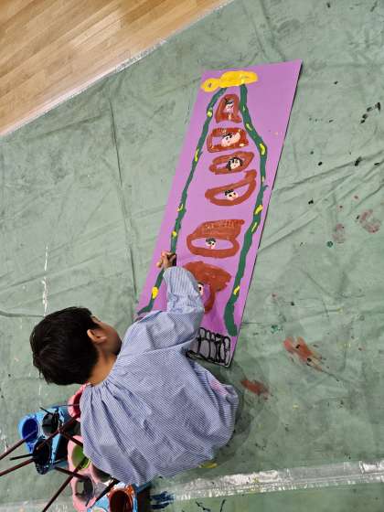 楽しかったこと、経験したことを大きな画用紙にダイナミックに存分にかいていました。