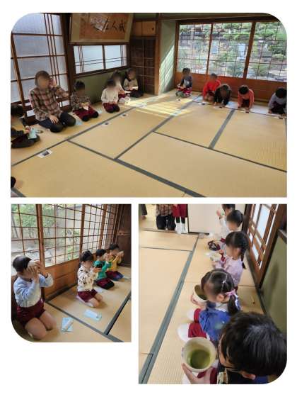 11月末にお茶遊びをしました。前回に引き続き、自分たちで友達にお茶を運ぶ「お運びさん」もしました。