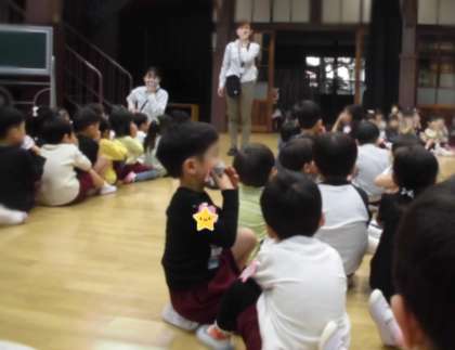 「火事になったらこんな音がするよ」と子どもたちに知らせてからベルがなりました。普段聞いたことがない音でしたが、泣く子どもはいませんでした。