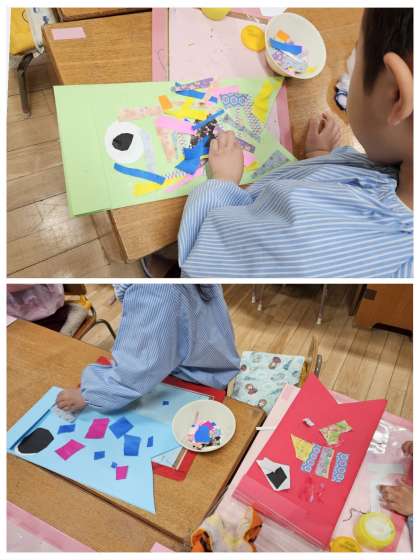 子どもたちは興味をもって自分でもこいのぼりををつくっています。