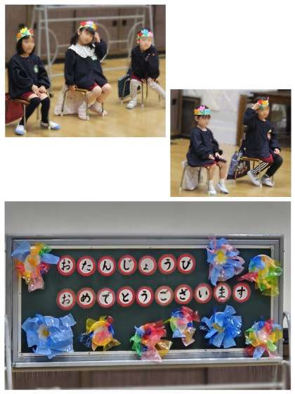 先生たちからの演技のプレゼントもあり4月も楽しい雰囲気の中でみんなで誕生児をお祝いしました。3歳児も楽しい嬉しい雰囲気を感じ取っていました。