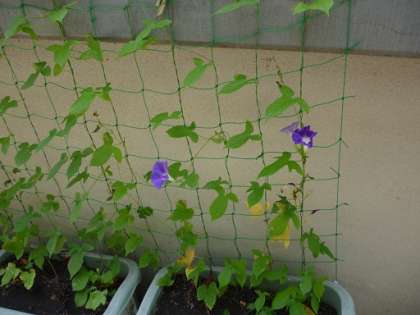 2学期が始まると、アサガオの花が咲き始めました。今日は昨日より2つ増えました。