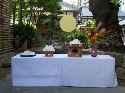 遊戯室ではみんなでつくったお月見だんご、季節の花やススキ、幼稚園のミヤギノハギを飾りました。