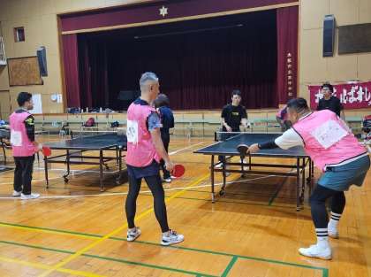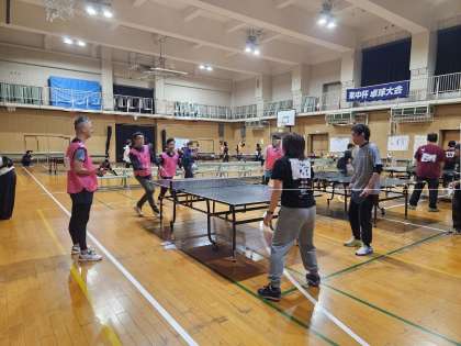 新人戦、団体戦は2チームに分かれて参戦!和気あいあい、応援し合い、汗を流しました。午後からの交流では、各学校、幼稚園の出場メンバーが混ざり合ってのチーム戦。卓球を通じて、親睦の輪も広がりました。出場する人、応援する人みなさん大活躍の1日、子どもたちの声援に力が沸きましたね!