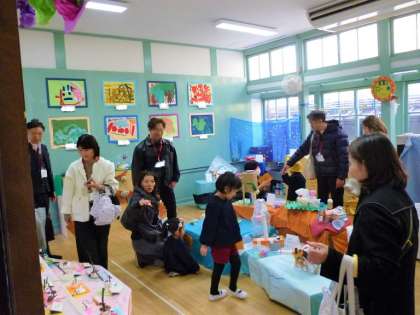 どの子どももお家の方と一緒に園内中に飾られた作品を見て回り、とても嬉しそうでした。