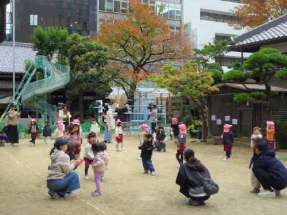 最後に集会!4歳児もも組さんが一緒にダンスを教えてくれました。「また来てね!」と最後まで優しく関わってくれていました。12月もまた来てくださいね。
