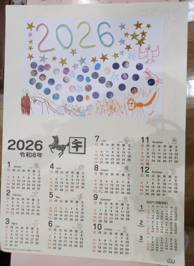 1月10日は土曜参観でした。今年の土曜参観では、保護者の方と一緒にカレンダーづくりをしました。                             いろいろな材料や用具を使い、ワクワクしながら協力してつくりました。かいたり、切ったり、貼ったりして一つ一つの個性がキラリと光る作品ができあがりました。できた作品はカレンダー本体に貼りつけて完成です。丁寧に大切につくった世界に一つのカレンダー、お家に飾るのが楽しみです。