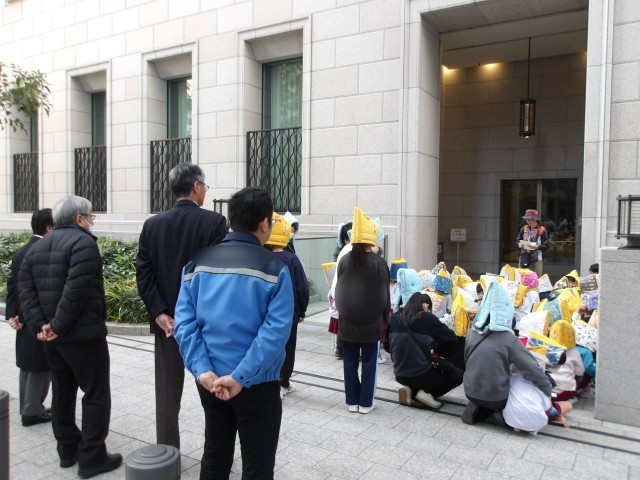1月19日、園児対象に地震の避難訓練を実施しました。今年は阪神淡路大震災発生から31年です。今回は、一旦園庭に集合した後、2次避難場所の日本生命ビルまで避難しました。指示をよく聞き、落ち着いて命を守る行動ができました。