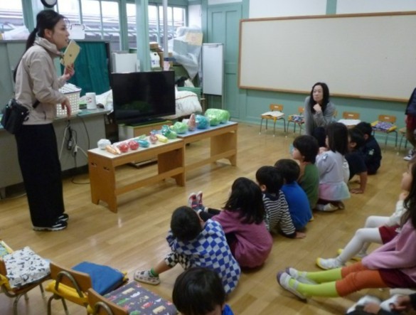 3月、みどり組にとっては幼稚園で最後の体重測定と保健指導でした。入園してから毎月の体重測定をしてもらいましたね。どれだけ増えたかな?とシールを数えると、重くなった月に貼るみどり色のシールが沢山ありました。いっぱい遊んでいっぱい体重も増えました。