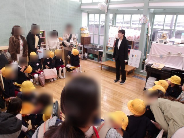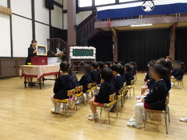 始業式の中で園長先生から入園式の話を聞いて、新しい友達を迎える期待もふくらませていました。