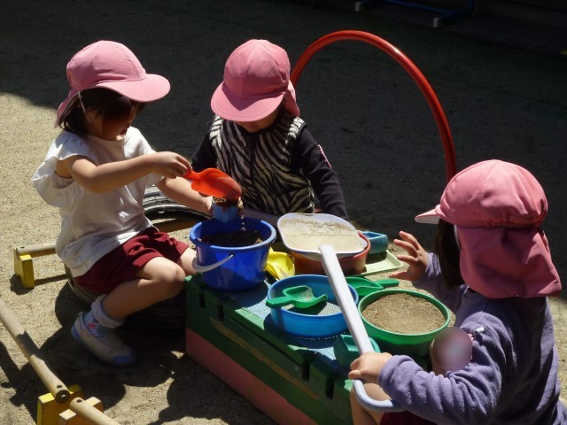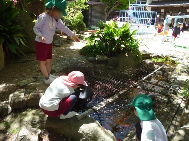 バランスペダルが新しくなり、夢中で取組子どもたちが沢山います。暖かくなり、池のコイは元気よく泳いでします。「お腹がすいてるでしょ!」と毎日のように、ご飯タイムも楽しんでいます。