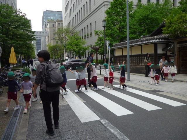 4月17日、みどり組は向かいの緒方ビルへレンゲ摘みに出かけました。