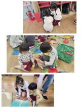 5歳児みどり組の様子です。 優しくあか組のお世話をしてくれているみどり組の子ども...