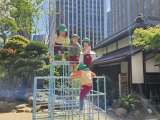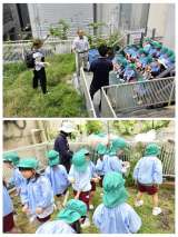 幼稚園の向かいの緒方ビルに遊びに行きました。屋上には、地域の川上さんが子どもたち...