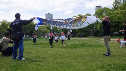 5月9日、5歳児もり組さんと4歳児はな組さんが、大阪城公園に行きました。