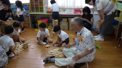 クラスのお部屋では、おじいちゃんやおばあちゃんの子どものころの遊びなどのお話を聞いたり、一緒に遊んだりしました。