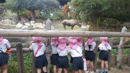 【10月24日】 天王寺動物園に園外保育に行きました。5歳児もり組さんは、3歳児もも組さんと手をつないでしっかりと歩いてくれました。4歳児はな組さんは、クラスのお友だちと手をつないで歩きましたよ。