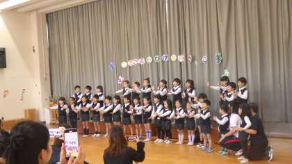 11月16日は、日本初の官立幼稚園である東京女子師範学校附属幼稚園(現お茶の水女子大学附属幼稚園)の開園日で【幼稚園記念日】です。毎年、幼稚園記念日の前後11月13日〜19日に全国幼稚園・こども園ウィークが開催されます。本園ではその取り組みの1つとして『うたごえひびけどうざっこ』を開催し、5歳児もり組さんが全学年の保護者の前で歌声を披露しました。