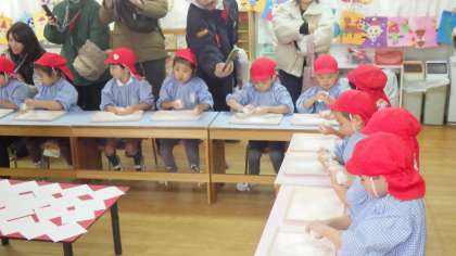 おもちをついた後は、それぞれ自分の鏡もちをつくりました。
