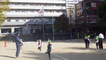 元気いっぱい走ると凧が舞い上がり、凧が一生懸命に走る子どもたちを応援しているようでした。