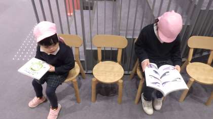 異年齢の友だちと手をつなぎ、電車に乗って『こども本の森 中之島』へ。