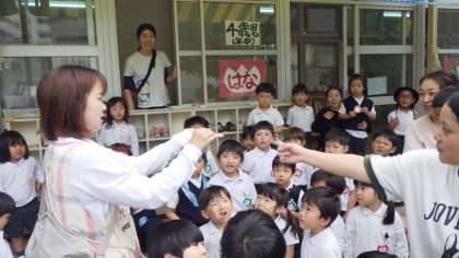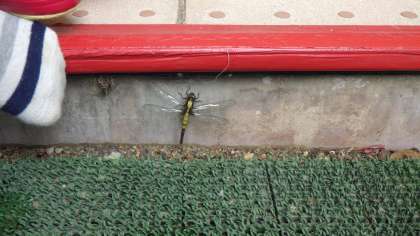 季節はずれのトンボのお客さんに子どもたちは大喜びでした。