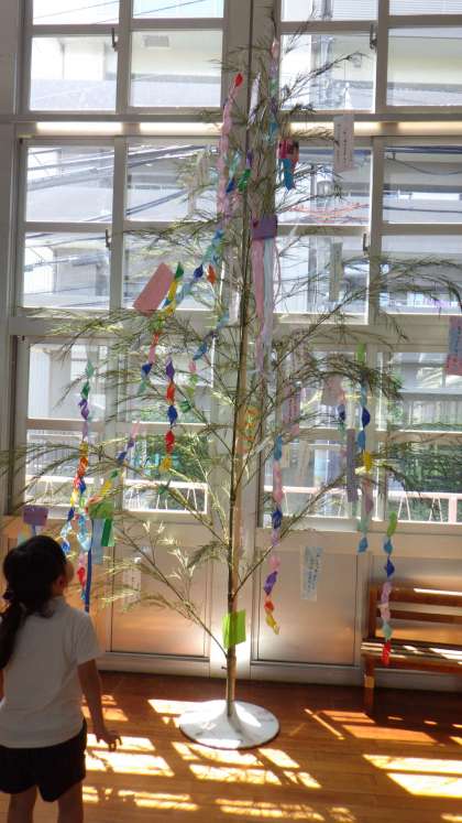 子ども達は、短冊を書いたり、飾りを作ったりして楽しみにしていました。「かき氷をいっぱい食べられますように」「アイドルになれますように」など、素敵な願い事がたくさんありました。また、「願い事が叶いますように」と願いを込めて、笹を眺めながら「たなばたさま」を歌いました。