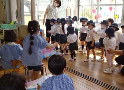 4月22日もも組の1日 公開日 2022/04/22 更新日 2022/04/22 お知らせ 3歳児もも組の子どもたちも、次第に幼稚園生活に慣れてきました。 大きい組さんに体操を教えてもらったり、園庭でかけっこをしたり、園内を探検したり。 お兄さんお姉さんに見守られながら、楽しいことを見つけて遊んでいます。 いいね(0)