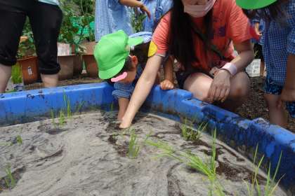 4歳児は「あれがお米になるの?」と興味津々で見ていました。