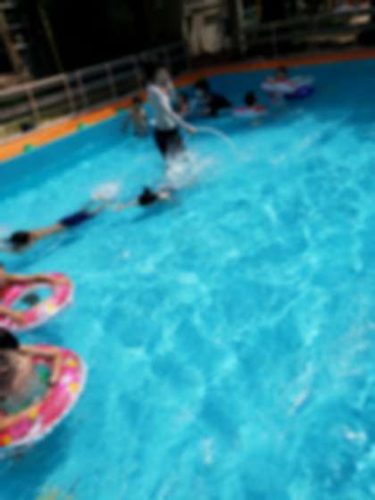 5歳児は、満タン(水深55〜60センチ)のプールのなかでイルカになったり、潜ったりして存分に楽しんでいました。