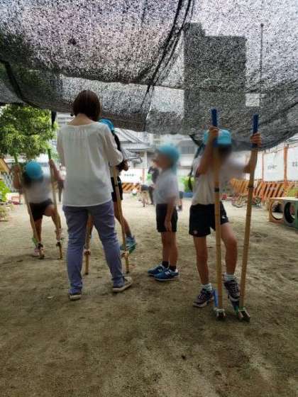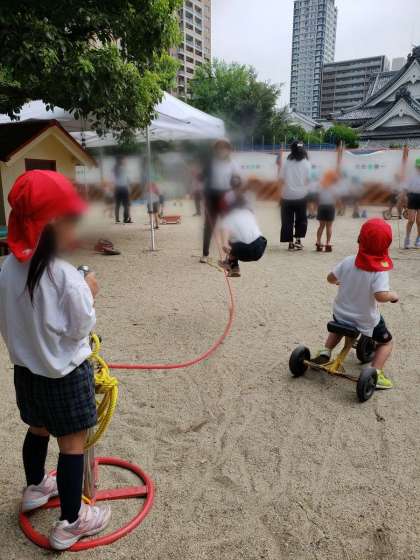 早速、園庭で友達と一緒に体を動かして遊んでいました。