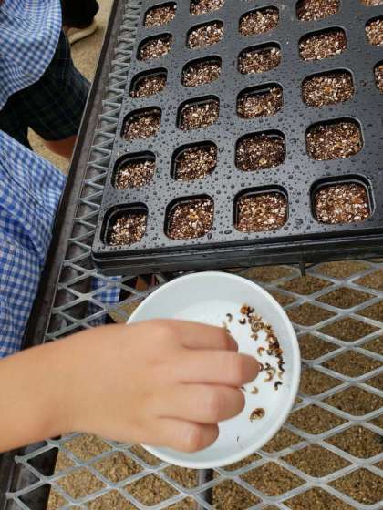 5歳児が、秋の種花事業で、キンセンカの種をまきました。