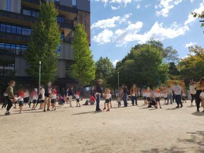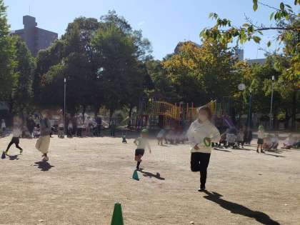 銅座公園でお家の人と一緒に体を動かし楽しく遊びました。