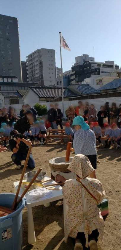 子どもたちも、ぺったんこ!力強く餅つきをしました。