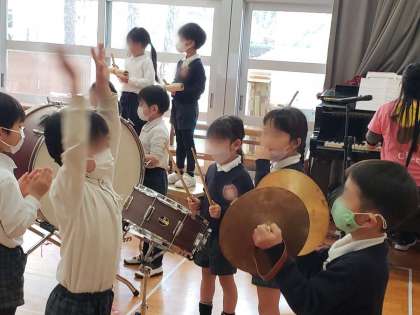 今週は、クラスの劇や合奏を異年齢混じりあい遊びました。5歳児が手をとって教える姿や、大きい組への憧れを膨らませる姿がありました。