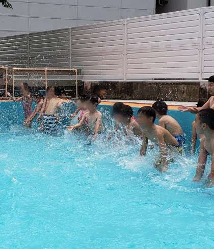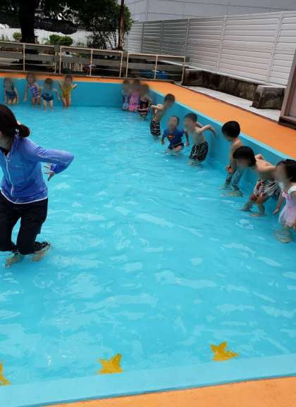 今日の水深は30センチ。ダンスやスーパーボール探しをして、誰も怖がることなく楽しく笑顔でプールと仲良くなれました。来週からももっともっとお水と仲良くなれますように!