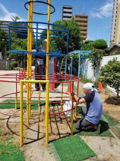 他の幼稚園の職員の方が応援に来てペンキを塗ってくださいました。暑いなか、ありがとうございました!