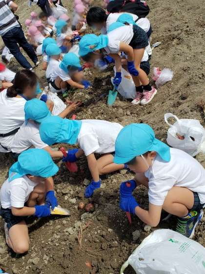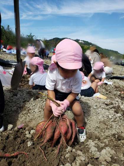 みんな、「よいしょ!」おいもを掘り「見て〜!」「大きいよー」と歓声をあげていました。