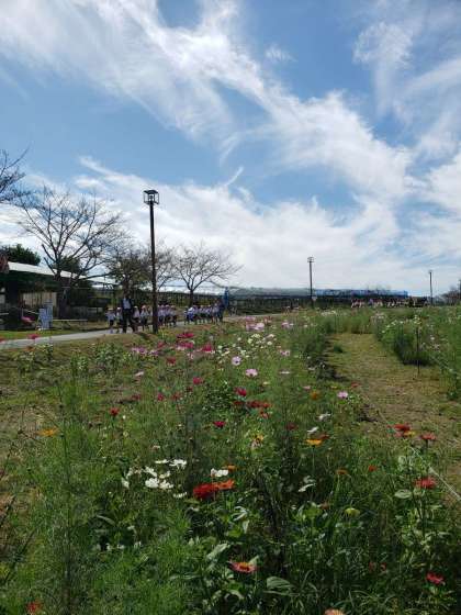 コスモスがきれいに咲いている広くて気持ちのよい公園でした。
