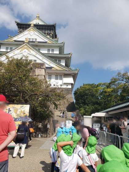 天守閣までは、エレベーターがとても混んでいたので、階段をつかいのぼり降りしました。上からの景色に歓声をあげたり、ピカピカに光る鯱を見たりしました。