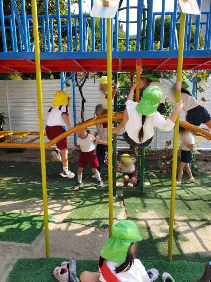 その後、仲よし遊びをし、園庭で一緒に遊びました。また、進学先の小学校を伝えあい「一緒だね」「また会おうね」