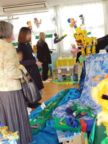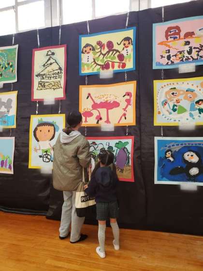寒い朝でしたが、子どもたちは元気よく登園してきました。今日は楽しみにしていた作品展。
