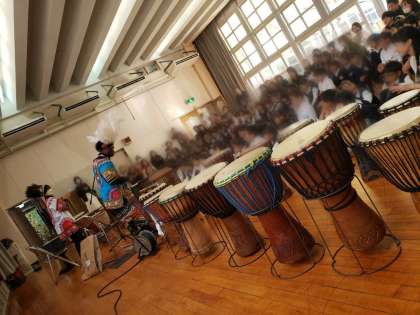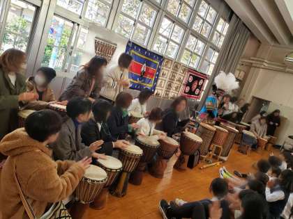 アフリカについてのお話も聞くことができ「みんなこれだけ上手に太鼓をたたけたらアフリカの人とすぐに仲良くなれるよ」という講師の先生の言葉が印象的でした。