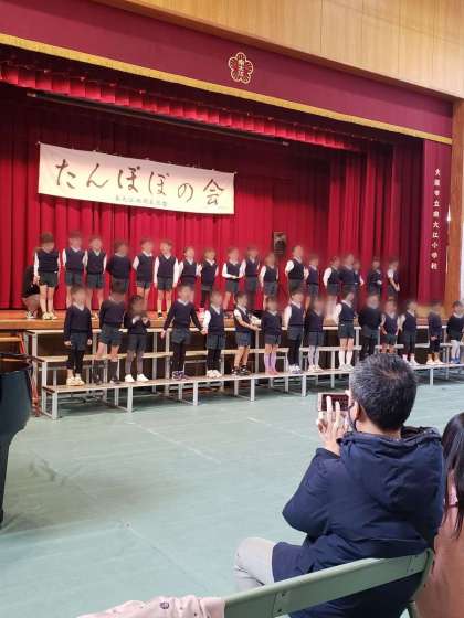 銅座幼稚園の5歳児は講堂の舞台で歌を披露しました。気持ちをあわせて楽しく歌を4曲歌い、沢山の拍手をもらいました。