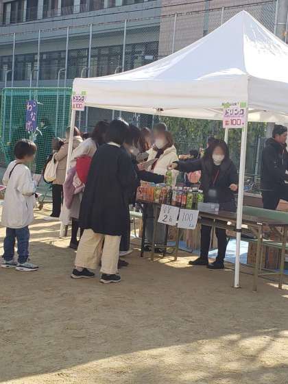 多目的室では作品展、校庭では小学校PTAドリームカーニバルが行われています。